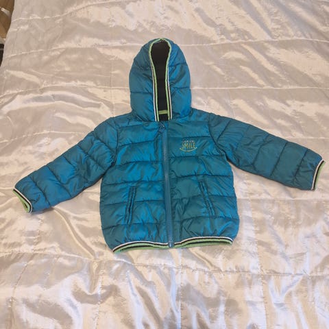 Uutena ostettu ja yhdellä lapsella käytetty hupullinen Mangon kevyttoppatakki. Moitteeton kunto.