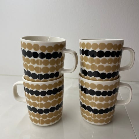 Hyväkuntoisia, arkikäytössä olleita astioita, 6kpl kaikkia. Ei värjäymiä. Jotain naarmuja varmasti löytyy, pesty koneessa.