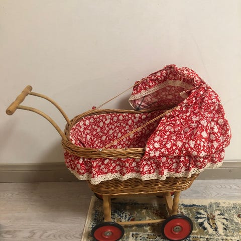 Usealla lapsella leikeissä olleet nukenvaunut. Pyörät nitisevät, mutta toimivat. Siellä täällä pientä kulumaa maalipinnassa. Ajavat silti hyvin asiansa!