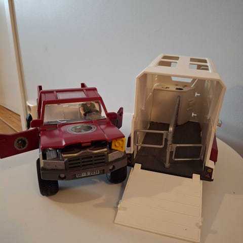 Hyväkuntoinen Schleich - auto ja traileri alkuperäisessä pakkauksessaan. Tuotenumero 42535. Pakkauksessa on mukana myös tarvikkeita, mutta alkuperäisistä puuttuu harjapakki, harja sanko, miehen hiukset ja naisen lakki. Kaikkia tarroja ei ole, mutta auton katolla olevaan telttaan tms. on, ohjeet ovat mukana.