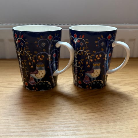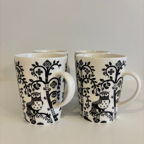 Iittala Taika mukit, 4 kappaletta. Mustavalkoinen kuosi. Vähällä käytöllä olleet.