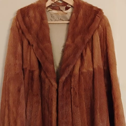 Vintage turkis on naisten kokoa M. Siinä on napillinen detalji kauluksessa ja neulottu hihansuu- ja helmareuna. Takki on itse käsin tehty. Silkkivuori. Turkikseksi yllättävän kevyt.