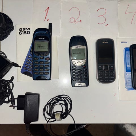 Vanhoja puhelimia, laturia eioo niin toimivuudesta en tiedä