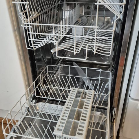 Vanha, mutta hyvin toimiva astianpesukone. Likainen täytyy pestä.