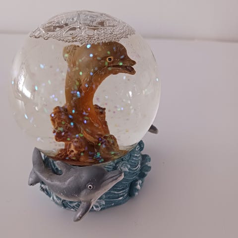 Muumi akvaario, lumisadepallo. Muumipeikko ja Niiskuneiti.