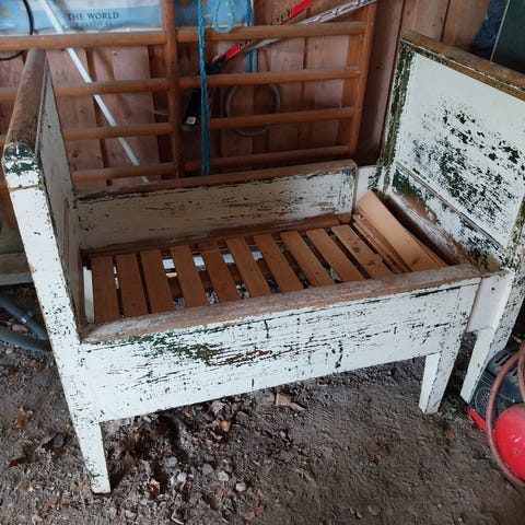 Pinnasänky vaatii fiksausta lähinnä maalia. Ollu käytössä tähänpäivään. luultavasti 70-80 välistä pisimmillään130 ja lyhyimmillään70 patja mukaan. Reunassa isoja puupalloja pinnoissa. Lähes alkuprtäinen saa 2 osaan mutta ei palasiksi