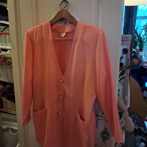 Aikakaudelle tyypillinen laatikkomainen muoto. Kokolapussa lukee S, mutta malli kokoa L.