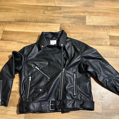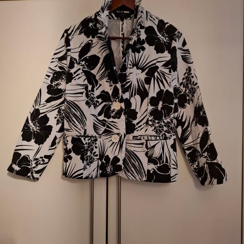 Myyntiin kuvan musta (ihan tumman musta)kuva vähän vaalentaa.takki on tuollaista raita kangasta.todella siisti ja ehjä.kaunis pikku takki.rintataskut.vetoketju menee ihan kaulaan asti.vaatyeessa ei ole koko lappuja vaan laitoin kainalo-kainalo mitan.