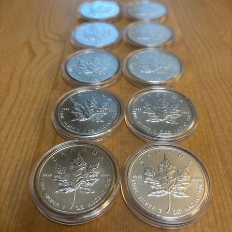 Kolikot ostettu täältä vuonna 2012: https://www.kronwitter-muenzen.de/silbermuenzen/silbermunze-1-oz/canada-kanada/canada-maple-leaf.html