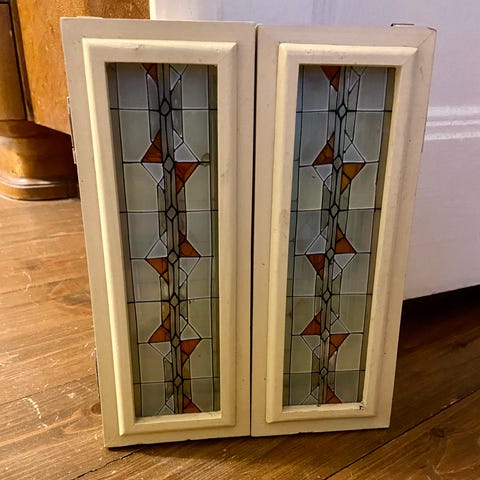 Vanha luonnonvalkoinen laadukas täyspuinen kehyspeili 54x64cm