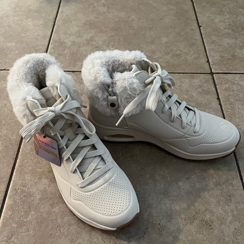 Kerran kävelty lumisilla pihalla, itselle turhan isot. Hands Free Slip-ins malli, sujahtaa kumartumatta jalkaan. Leveä, relaxed fit -lesti. Water repellent. Koko eur 39, 26 cm.