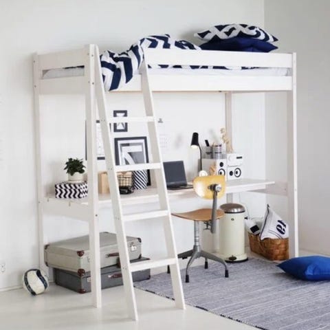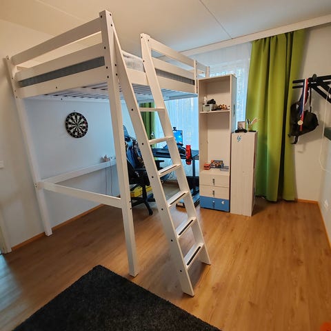 IKEA Parvisänky lastenhuoneeseen. Parvisänky tarjoaa yläpedin ja tilaa työpöydälle tai leikkialueelle alapuolella, sopiva lastenhuoneen kalusteeksi tai mökille.