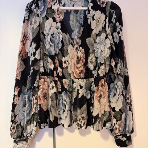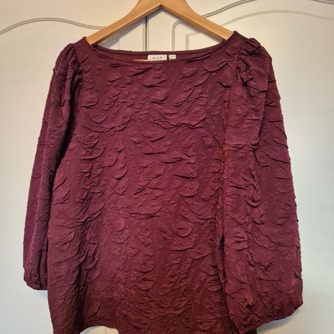 Vila pusero mustassa värissä, valmistettu polyesteristä. Naisten koko S. Puserossa pitkät hihat ja vyötäröllä laskostettu helma.