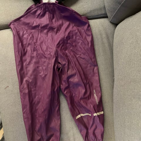 Mustat kurahousut. Muuten ehjät, mutta lahkeesta hävinnyt toinen kumilenkki.