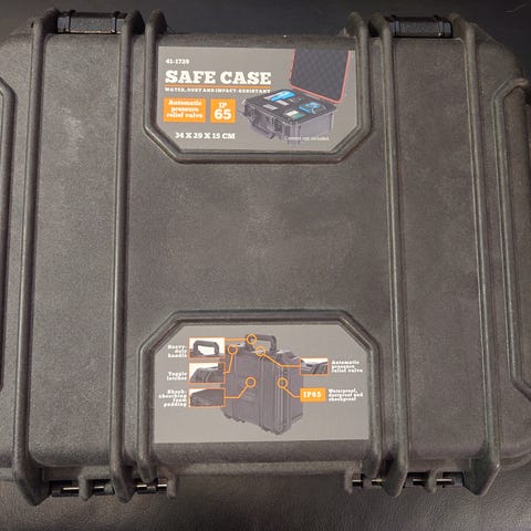 Jäännyt varalle, nyt sitä tarvitsevalle. Iskunkestävä ja tiivistetty muovisalkku 4 vahvalla lukituksella. Lukon paikat myös omille lukoille. 3 kerrosta foamia joista 2 muotoiltavissa valmiiksi leikatuilla ruudukoilla. Pinnasta tasoitettu valmiiksi merkin ulokepaikka jotta voit laittaa omat tarrat tai kiinikkeet. Edessä paineventtiilli.