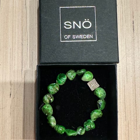 Snö of Swedenin kaunis koru / rannekoru / helmirannekoru, joka koostuu 8 helmirenkaasta. Helmirenkaat muodostuvat puisista pienistä turkoosin värisistä helmistä. Helmirenkaat on kiinnitetty yhteen hopeanvärisellä metallisella palkilla, jossa lukee Snö of Sweden. Yhden pienen helmen halkaisija on n. 0,4 cm. Korun leveys n. 4,5 cm, halkaisija n. 6 cm. On ollut vähäisellä käytöllä, joten on todella siistissä kunnossa. Hinta 20 €. Nouto Espoo / Helsinki (esim. Espoontori / Lippulaiva / Sello / rautatieasema / Kamppi). Voin myös postittaa, jolloin postituskulut lisätään hintaan.
