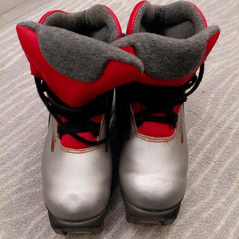 Salomon Siam 5 naisten hiihtomono, koko 26 cm (EUR 40, UK 6.5), sopii mielestäni hyvin 39 kokoiselle jalalle. Värit harmaa ja valkoinen. Monot on suunniteltu hiihtoon ja niissä on vetoketjullinen suojus ja nauhakiinnitys. Myynnissä myös sukset.