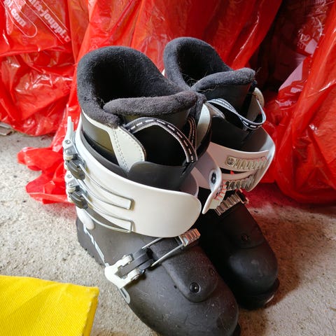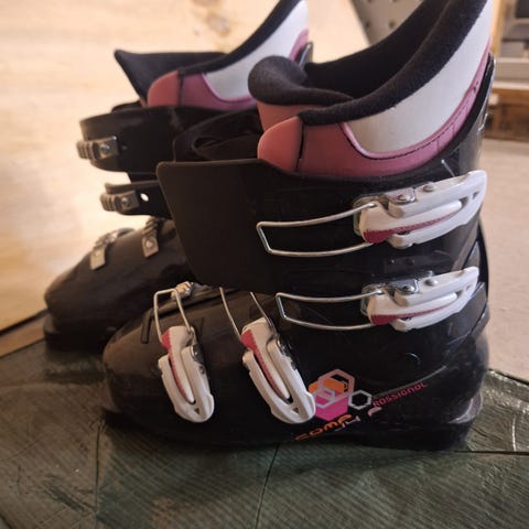 Laskettelumonot. Ollut käytössä lapsella, jonka kengän koko 36-37.