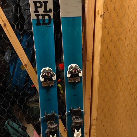 Puuterisukset, pohja ja kantit kunnossa, päältä maalattu, Salomon STH -siteet (DIN 16).