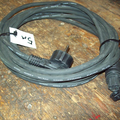 Pituus 2.5m. Töpseli 90 asteen kulmassa. (sopii paremmin tolpan kannen alle) Mahdolliset postikulut ostalle.