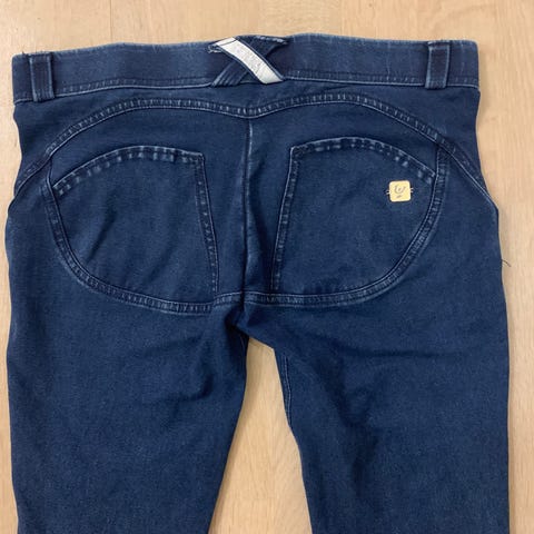 Freddy WR.UP housut maastokuvioiset ja tum.siniset farkut. Koko S