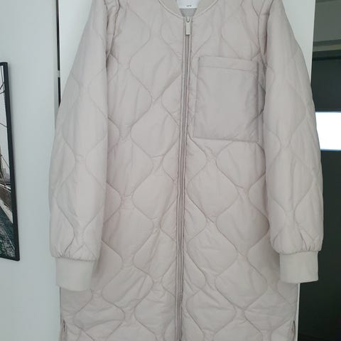 Tensonin laadukas syvänmusta tikkitakki (pääkuvaan olen valottanut kuvaa, jotta yksityiskohdat näkyvät selvästi). Takissa on polyestervanutäyte. Pikku pakkasiin ja kevättä kohti mentäessä juuri passeli.