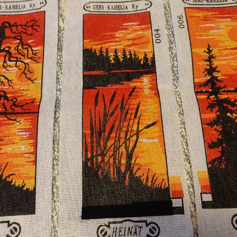 Kirjontatyö paketissa. Lojunut anopin kaapissa avaamattomana.