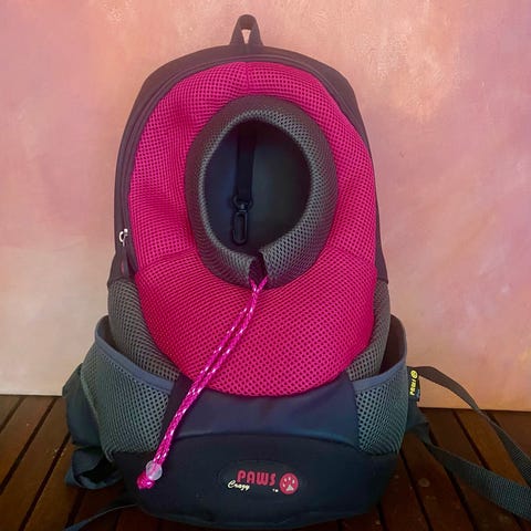 Laadukas reppu koiran kuljetukseen.