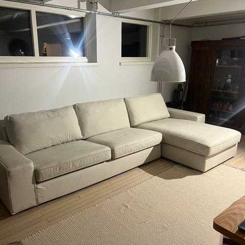 Beigen värinen Kivik 3-istuttava sohva + divaani. Ovh n. 1300€.