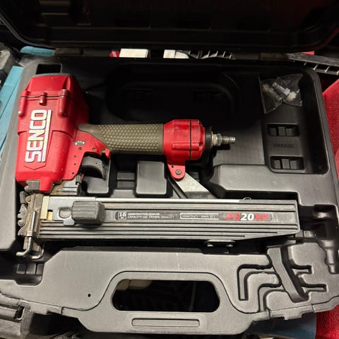 Senco RoofPro 450 naulain kantolaukulla. Ja huopanaula 32mm ja 38mm