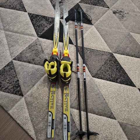 Lasten suksisetti 110cm. Pitopohjasukset.