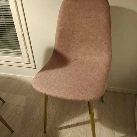Myydään 4 kpl valkoisia ruokapöydän tuoleja puisilla jaloilla.