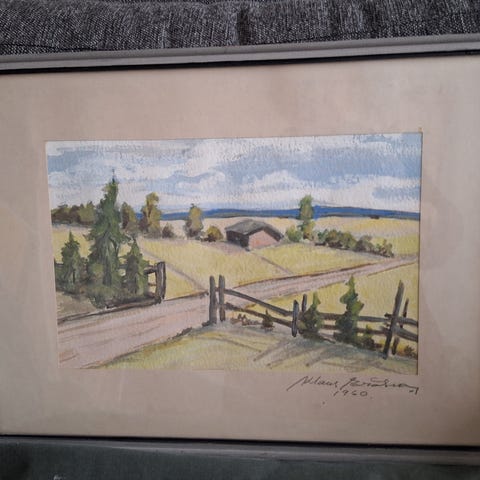 Hakusanat: asetelma, öljyväri, Paketoitava, taide, kehystetty, taiteilija, 1970-luku, taulu, realistinen, taulut, piirustus, kehys, lehmä, raamit, grussen haaremi, väri, sisustus, maisema, vesiväri, akvarelli, teos, kehykset, raami