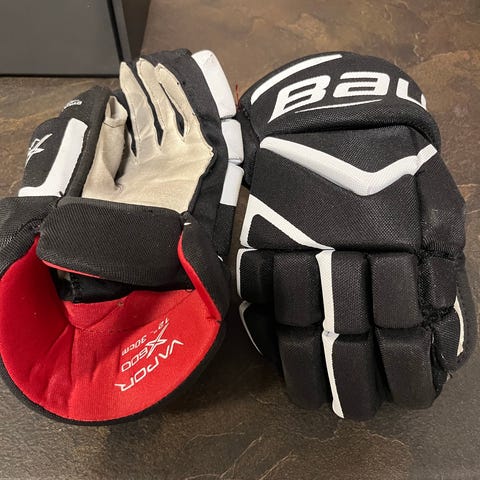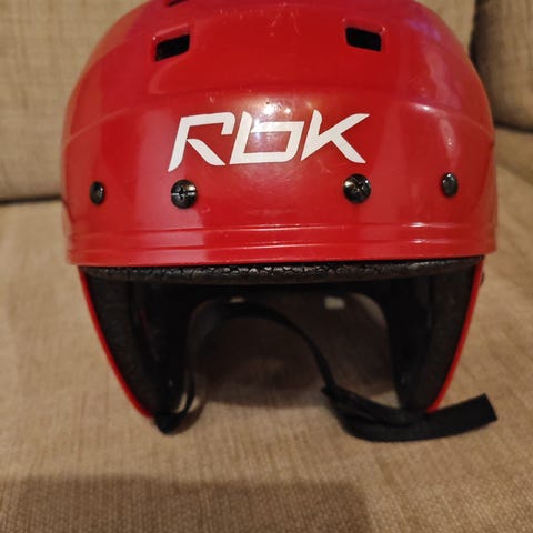 Annetaan Bauerin S-kokoinen jääkiekkokypärä. Ristikon vasemman puoleinen kiinnitysosa puuttuu. Ristikon saa ruuvattua myös kokonaan irti.