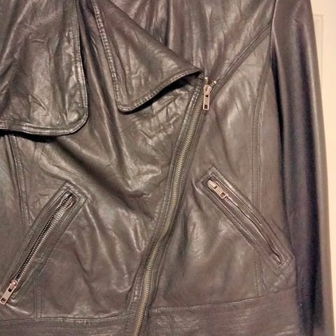 Nahka on napakkaa, mutta samalla ihanan pehmeää. Takki on ollut kerran käytössä eli yhä täysin uutta vastaava.