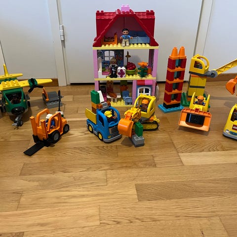 Myydään Duplo-setit 10818 (Ensimmäinen kuorma-autoni), 10529 (Kuorma-auto, puuttuu yksi viisto keltainen pala), 10808 (Pieni lentokone) ja 10815 (Ensimmäinen rakettini). Mukaan tulee myös Duplo-rakennuslevy. Yhteishinta 20 euroa.