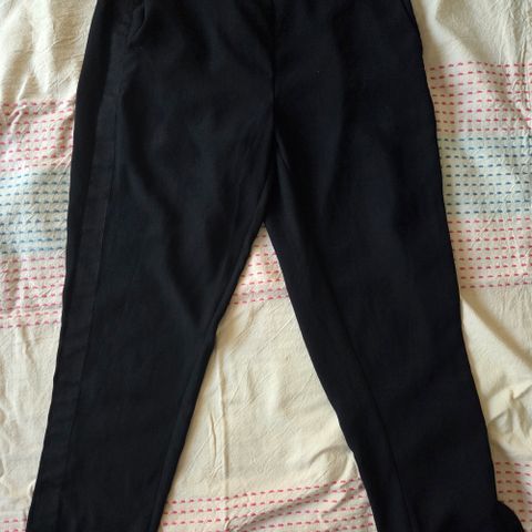 Intiasta ostetut vajaamittaiset housut. Räätäli fiksannut istuvuutta edestä, mutta kerkisin lihoa ohi. Nyt ne istuu vähän pienemmälle eli 42 kokoiselle. Olen 173cm pitkä, joten lyhemmälle nämä housut on täysmittaiset.