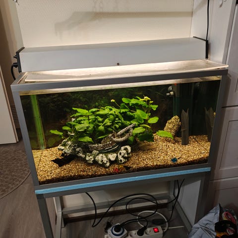 Ostetaan akvaario + kaapisto. Maksimipituus 110cm, muutoin mitoilla ei väliä:)