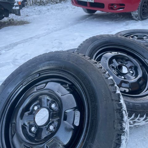 Nastarenkaat, kulutuspintaa 6-7mm, kaikki nastat taitaa olla tallella. 2 kpl 175/70R14, 2 kpl 185/70R14. Ruosteettomat vanteet, pölyiset on silti. Pulttijako 114,3, ET 44, renkaat klaukkalassa. Keskireikä yli 68mm (69,1?), renkaat voi laittaa myös autoihin, missä pienempi keskireikä, esim, joihinkin nissaneihin, honda, kia, hyundai..