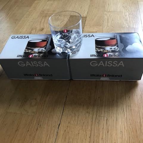 Iittala Gaissa lasit 22 cl. Design Tapio Wirkkala. Käyttämättömät upeat lasit alkuperäis pakkauksessa 1970-luvulta. Kaikissa laseissa i-tarrat (vanhan iittala tuotannon i-tarra). Huolellinen pakkaus postittaessa.