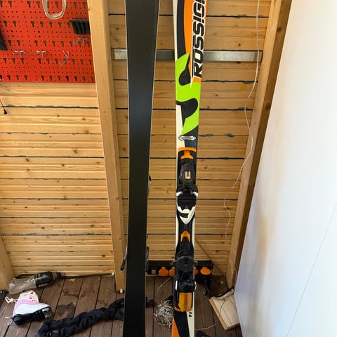 180cm rinnetykit 65,5mm vyötäröleveydellä ja Atomic X12 grip walk siteillä. Muutama kosmeettinen pintakolhu. Ei vaikuta laskemiseen. Kantit ja pohjat huollettu ja sen jälkeen laskettu 2pv