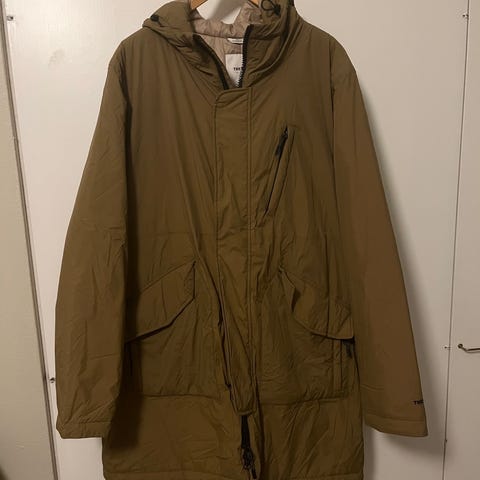 Tuulta- ja vettä hylkivä ja kulutusta kestävä kangas, ohut vuori, tilavat taskut magneetti napeilla, kaksisuuntainen vetoketju, säädettävä huppu ja hihansuut, mitat kainalo-kainalo n.57cm, hihansuu kainalosta n.50cm, niska-helma n.100cm, ehja, puhdas, hyvässä kunnossa, vähän käytetty, laatumerkki. välikausi kuoritakki ulkoilu retkeily patikointi ruotsalainen sadetakki naisten L