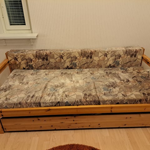 Lähes käyttämätön kompakti vuodesohva. Sopii paikkoihin mihin moni muu ei ja toimii istuessa ja nukkuessa. Jää muuton yhteydessä tarpeettomaksi, siksi myynti.