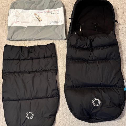 Bugaboo lastenrattaiden lämpöpussi. Väri on harmaa (stellar), vaikka näytää kuvassa ruskealta. Mukana lisätäyte kylmemmille keleille. Sivuilla heijastavat raidat.