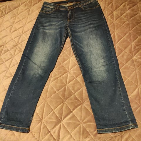 Kuvan farkut joustaa. Sivu ja takataskut. Vyötärö resori ja nyöri, ei pidetty, taitokset säilytyksestä.