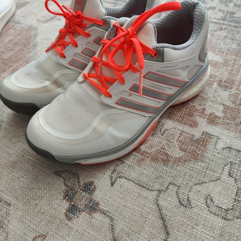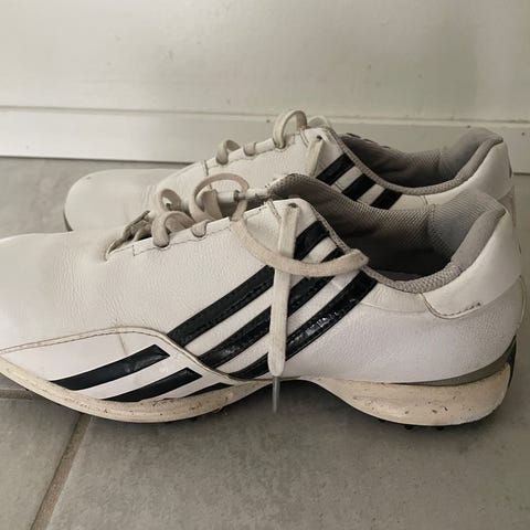 Adidas golfkengät, koko 38, valkoinen väri. Vaihdettavat ruusukkeet pohjissa. Kengät on varustettu Climaproof-ominaisuudella, jotka tarjoavat hyvän säänkestävyyden. Käyttämättömät, alkuperäinen pakkaus mukaan.