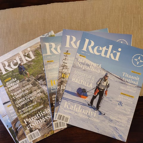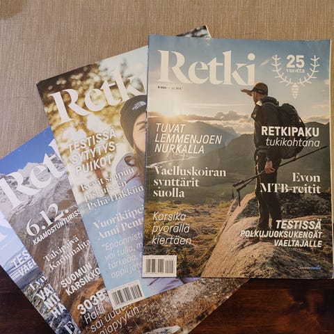 4 kpl vuoden 2023 Retki-lehtiä. Ihan mahtava lehti, hyvää asiaa retkeilystä! Lehdet hyvässä kunnossa, mutta toki jotain taitoksia ja pieniä tahroja esiintyy. Osoitteeni olen takakannesta leikannut pois. Ilman toridiiliä tilattuna postikulut lisätään hintaan.