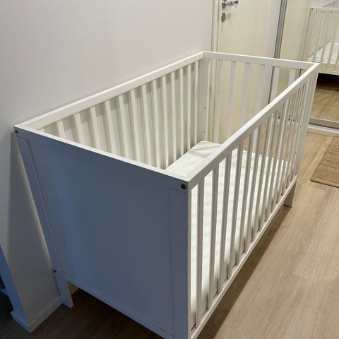 Pinnasängyn reunojen maalipinta on osittain hieman kulunut, muuten loistavassa kunnossa. Patja ollut yhdellä lapsella käytössä alle vuoden.
