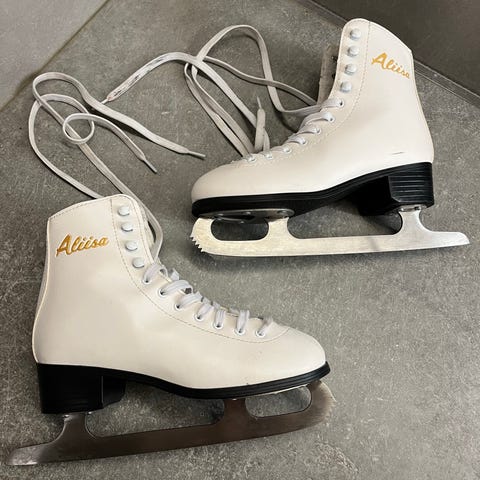 Aliisa luistimet koko 39, valkoinen väri, käytetty vain pari kertaa eikä ole teroitettu.