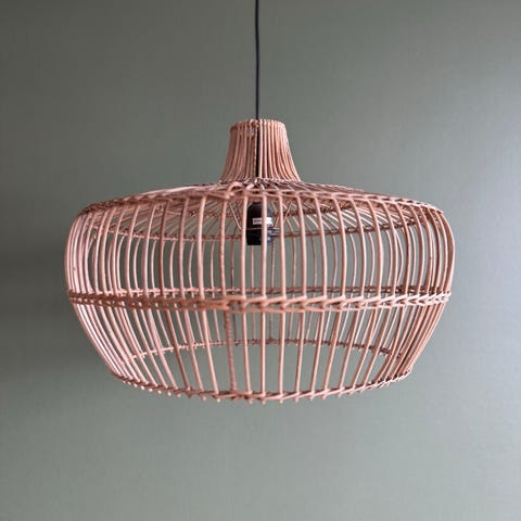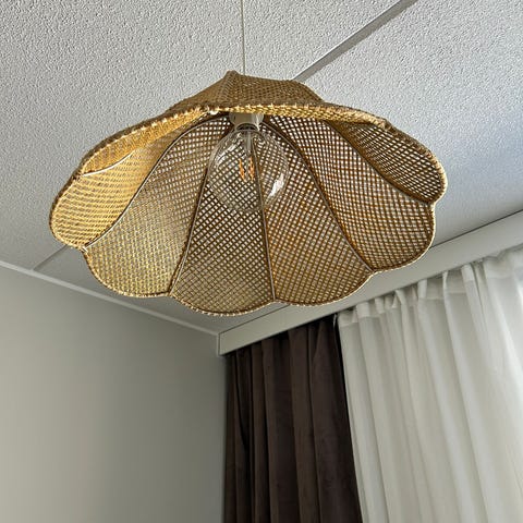 Hyväkuntoinen rottinkinen kattovalaisin.